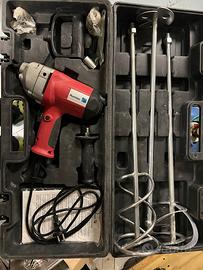 Per mescolare vernici, malte e colle. Leggero e maneggevole, unisce comfort di impiego e alta resa. Interruttore elettronico. Velocità 550 giri/min. Peso 4 kg. Dotato di 2 fruste da Ø 120 mm, 1 frusta da Ø 100. Attacco M 14. Con valigetta.
