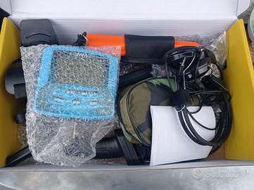 OMMO Metal Detector per adulti professionale, rilevatore di metalli ricaricabile tramite USB, 6 modalità, stelo regolabile da 69,8 a 124,5 cm, alta precisione, bobina impermeabile IP68 da 25,4 più Pinpointer. Tutto rigorosamente nuovo, mai utilizzato e ancora nella scatola