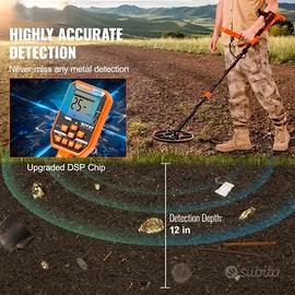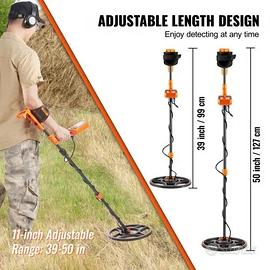 Rilevatore per Metalli Impermeabile IP68 Sommergibile 3m Bobina di Ricerca 30,5cm 7 Modalità di Funzione 4 Batterie Ricaricabili Lunghezza Asta Regolabile 99-127cm Metal Detector Professionale