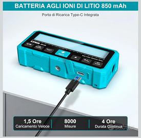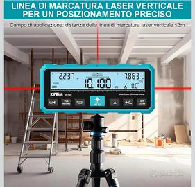 Metro laser KIPRIM DR120 con raggio bidirezionale. - Misura fino a 120 metri. - Linea laser verticale. - Livella elettronica integrata. - Misura in metri, piedi e pollici. - Connessione USB-C.