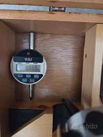 valigetta Mitutoyo commercializzata dalla WBJ metrology ltd England con micrometro digitale millesimale a 3 punte . Campo operativo da 40mm a 100mm con 6 testine intercambiabili , 3 anelli di riscontro, + Prolunga per misurazioni profonde . La valigetta è degli anni 90 ma saranno state fatte al massimo 50 misurazioni, alcune teste non sono mai state montate, la prolunga è nuova mai utilizzata ancora incartata con carta oliata . I comparatori ne sono 2 tutti mitutoyo solo il primo marcato WBJ sul coperchietto della batteria perché era commercializzato appunto da quell'azienda. Tutto in scatola originale in massello di faggio con istruzioni per il comparatore e chiavi di servizio. Oggigiorno mitutoyo è diventata più furba, e i nuovi modelli per avere un campo operativo come questo da 40mm a 100 mm devi acquistare 2 scatole da quasi 4500 euro ciascuna +Iva , serie 568-927 + 568-926. Disponibilità ad effettuare misurazioni assieme all'acquirente per dimostrare la bontà e precisione dello strumento. accetto proposte decenti.