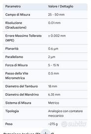 Micrometro Mitutoyo mod. 193-102 in custodia protettiva. Ideale per misurazioni precise. - Campo di misura: 25-50mm - Precisione: 0.01mm - Marca: Mitutoyo - Custodia originale inclusa