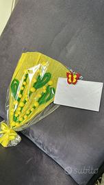 mimose per la festa della donna fatte a mano, con la possibilità di cambiare accessori, 4 euro spedizione apparte.