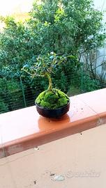 mini bonsai di ulivo in vaso di ceramica con terriccio ricoperto da muschio naturale