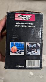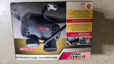 Mini-compressore portatile Ultimate Speed (modello KH 4106) in condizioni pari al nuovo. L'oggetto ha qualche anno ma è rimasto praticamente inutilizzato, conservato sempre nella sua scatola originale. È perfetto per chi cerca uno strumento affidabile da tenere in auto per ogni evenienza. Specifiche tecniche: Alimentazione: 12V tramite presa accendisigari. Pressione: Fino a 17 bar (250 PSI). Accessori: Completo di 3 adattatori per gonfiare ruote di bici, palloni e materassini. Praticità: Cavo da 3 metri per arrivare ovunque e manometro integrato per controllare la pressione. Testato e perfettamente funzionante. Scatola e manuale inclusi.