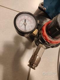Mini compressore super silenziato Fengda 186 con serbatoio, usato ma perfettamente funzionante, ottimo per aerografia. Completo già di filtro, regolatore di pressione e attacco rapido.