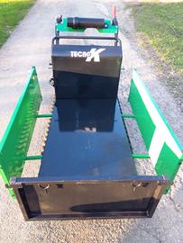 CARATTERISTICHE TECNICHE: Avviamento a Strappo con Autoavvolgente Trasmissione Meccanica 3 Marce AV + 1 RM Carro Rinforzato con 3 Rulli + 1 Ruota Motrice Cassone Standard (mm) 1050 x 900 x 330 Cassone Esteso (mm) 1250 x 1020 x 330 Ingombro Totale (mm) 1700 × 700 x 985 Carreggiata 710 mm (Esterno Cingoli) Capacità Max Carico 500 Kg Ribaltamento del Cassone Manuale Assistito con Molla a Gas Peso Macchina a Secco 210 Kg Dimensioni Imballo (mm) 1200 x 820 x 1100