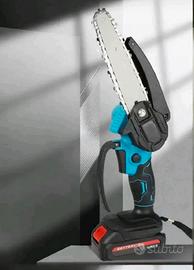 mini motosega a batteria compatta, progettata per la potatura e piccoli lavori di giardinaggio. È caratterizzata da una barra da 6 pollici e un sistema di alimentazione a batteria ricaricabile, ideale per l'uso con una sola mano grazie al suo design leggero ed ergonomico.