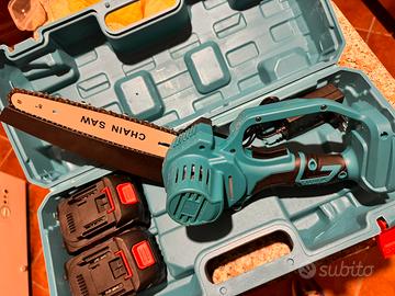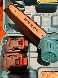 Mini motosega a batteria 8 pollici Due batterie, caricatore e borsa trasporto
