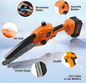 Mini Motosega a Batteria, 8 Pollici Motosega 1000W, 6000mAh/24V, Mini Motosega Portatile,Sega Potatura,Oliatore Automatico,Blocco di Sicurezza, Adatta per Taglio Legno e Giardini. Nuovo mai usato ancora nello scatolo