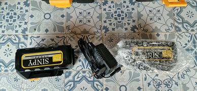 mini motosega SINPY 6 pollici completa di accessori . 2 batterie e caricabatterie , catena di ricambio , utensili per la pulizia . Comprata ma mai usata , nella custodia originale .