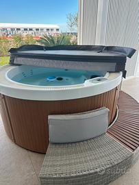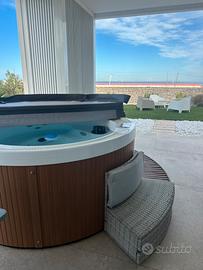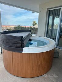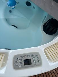 Vendo mini piscina acquistata ad aprile per 4 persone da esterno capienza 500 litri, 3 modalita di idromassaggio , piu girovasca. Pari al nuovo