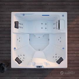 Minipisicna jacuzzi SPA Pulsar modello Rigel idromassaggio 210x210x90cm in configurazione full optional. 6 posti Minipiscina SPA RIGEL Capacità 7 persone consigliata 6 (1 chaise longue, 5 sedute) Dimensioni: 210x210x90cm Colore Acrilico: Bianco Puro Colore riv: Da definire Peso a vuoto: 392 kg Peso a pieno: 1.592 kg Capienza: 1.200lt DOTAZIONE: -Getti idromassaggio in acciaio INOX 53 (34 acqua, 19 aria) -Pompa idromassaggio: 1x 3,00hp LX (2 velocità) -Pompa Aria -Riscaldatore 3kW -Pannello di controllo Digitale -Filtro acqua in carta ISOX OPTIONAL INCLUSI IN OMAGGIO: -Illuminazione LED RGB interno vasca cromoterapia (32LED) -Sistema audio Bluetooth waterproof (2 speaker) -Cascata emozionale LED multicolore -Faretto LED -Angolari Luminosi -Cuscino poggiatesta ErgoPlus pz. 3 -Isolamento interno termico -Ozonizzatore automatico -Base in ABS PREZZI IVA INCLUSA Specificare la provincia per scoprire il costo del trasporto. CONTATTACI GESTIAMO VENDITE A DISTANZA E IN SEDE. - Pulsar Wellness Via Benvenuto Cellini, 4B San Giovanni Rotondo (FG) 71013 - Uffici: 0882 276673 Commerciale: 351 6086694 Mail: info@pulsarspa.com Lun. - Ven. 9:00/13.00 - 15:00/18:30