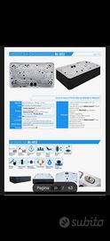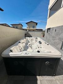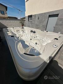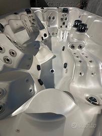 Mini Piscina Idromassaggio Beauty Luxury 380x220x98cm Made in USA. 8 posti: 5 sedute e 3 Chaise-Longue 78 getti: 62 acqua e 16 aria + un getto fontana Sistema audio Bluetooth con speakers integrati Cuscini poggiatesta Luci interne Riscaldabile Filtri acqua a carta (2 filtri). Copertura riguda termica In perfetto stato, visionabile. Prezzo 12.000€, (costo del nuovo 21.000€).