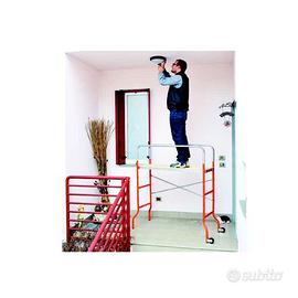 Mini ponteggio uso domestico piccolo e maneggevole con piano di lavoro in legno di pino, misura ingombro 144x62x142 cm