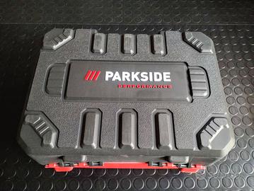 Mini smerigliatrice angolare di precisione a batteria PARKSIDE PERFORMANCE 12 V completa di 2 dischi da 76 mm, uno per metallo e uno per piastrelle, guida da taglio e pratica valigetta in plastica per il trasporto.