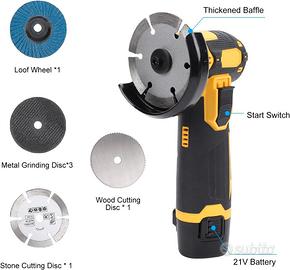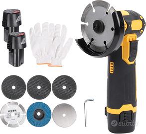 Mini smerigliatrice angolare con motore brushless, lucidatrice elettrica con 2 batterie incluse da 12 V e 6 lame. Inclusi guanti protettivi.
