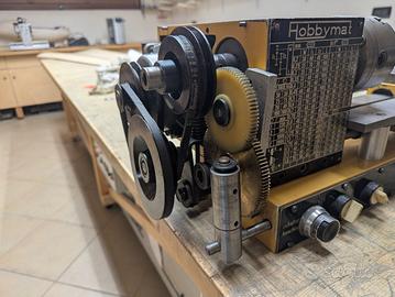 Tornio Hobbymat usato ma in ottime condizioni , e’ stata aggiunta guida per aumentare robustezza nella tornitura . Il tornio ha marce lente e veloci con avanzamento sul carro e puo ‘ filettare . Gli ingranaggi sono solo quelli montati nel tornio ma con poco prezzo si trovano tutti gli ingranaggi eseguiti in stampa 3d , il tornio e’ visionabile previo appuntamento . Per altre informazioni non esitate a contattarmi. Precio accordo si puo anche spedire ( spese a carico acquirente )
