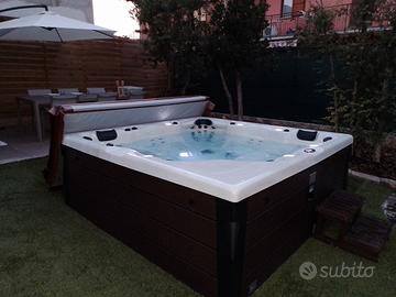 Minipiscina idromassaggio spa Major 2 lettini 3 sedute con copertura pelle,riscaldatore,radio luci colorate,possibilità trasporto,fornitura prodotti per un anno e due lettini prendisole in omaggio