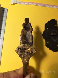 Gancio molto particolare, in metallo. Credo sia fabbricato in Inghilterra, con N di matricola parzialmente leggibile. Raffigura la signora Bardell del libro di Dickens. Misura circa 10cm x 3,5.