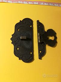 Chiusura per scatola legno, in metallo, due pezzi. Vedere fotografie. Visti e piaciuti. Minuteria, collezionismo, bricolage. Vendo tutti e due assieme. 15€