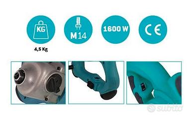 Il miscelatore Viscomix di FT miscela calcestruzzo, malte o pittura. Dotato di due velocità (giri/min) - 180-400 (MIN.) - 300-700 (MIN) - e pulsante di accensione con blocco.