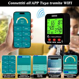 Vendo misuratore digitale per analisi dell’acqua che misura diversi parametri: pH, EC, TDS, salinità, ORP, temperatura e umidità.