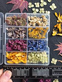 Mix/set di 8 tipi di elementi decorativi/fiori essiccati, secchi/essiccati/pressati.