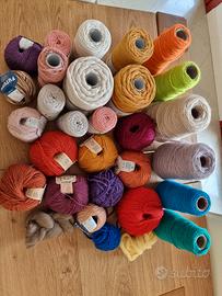 Mix gomitoli di lana e corda di ottima qualità, per lavoro a ferri, uncinetto e macramé. Vendo nuovi, mai usati. Vendesi anche separatamente.
