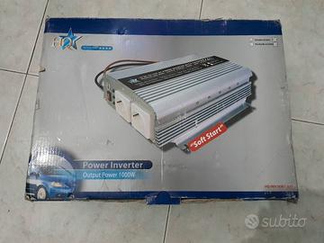 Mobee Technomax Inverter 1000 W(modello HQ-INVIKW/12) a onda sinusoidale modificata. Converte la corrente continua (DC) a 12 V in corrente alternata (AC) a 230 V, tipica della rete domestica, permettendo di alimentare dispositivi a 220-230 V da una batteria.