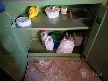 Vendo mobile in ferro 110x110x 40 cm a norma di legge per stoccaggio di fitofarmaci con fondo anti sversamento estraibile. Come nuovo no ruggine.