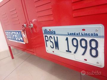Mobiletto Industrial Design basso in Lamiera verniciata con Targhe e Cartelli - per arredo Garage - Officina - Giardino - Loft. Misure 118x63x40 E' gradito il ritiro in sede - possibilità di organizzare in proprio la spedizione.-