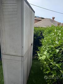 mobiletto da esterno in plastica resistente, con ripiani+vano lungo x scope o simili. Buono stato. consegno anche a mano in centro Genova o levante fino a Rapallo
