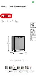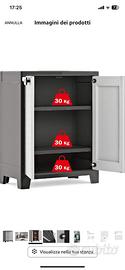 Scaffale esterno Keter grigio chiaro e grigio antracite, con 3 ripiani interni con portata 30 kg.