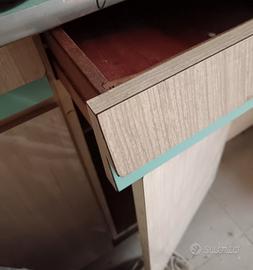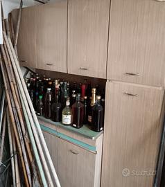 Mobili componibili composti da 6 ante piccole, 3 superiori e 3 inferiori, 1,ante grande a porta intera suddivisa in 2, e 3 cassetti colore beige