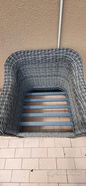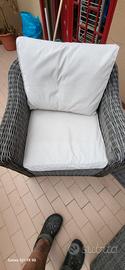 Salotto da giardino/terrazzo 5 posti in alluminio e resina intrecciata, composto da 1 tavolino (L 115 x P 60 x A 30 cm), 1 divano 3 posti (L 220 x P 90 x A 69) 2 poltrone (L 95 x P 90 x 69 cm altezza seduta 25/40 cm, cuscini seduta 15 cm di spessore).