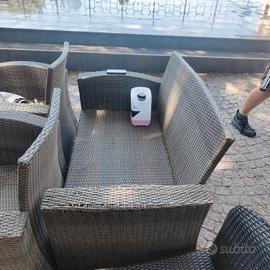 mobili in plastica effetto vimini vendo come foto allegate tutto a 100 euro 2 divani 3 poltroncine