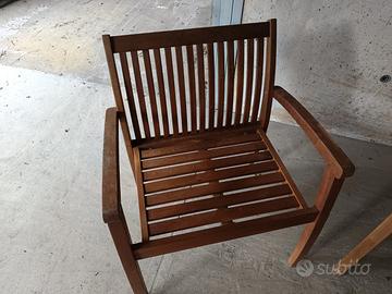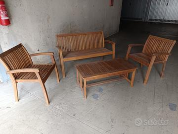Kit mobili in legno per giardino, terrazzo o balcone Kit composto da tavolino, due sedie, una panchina. Il tutto corredato da cuscini color panna Solo ritiro a mano zona Macherio (MB)