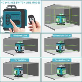 【4 X 360° Livella Laser Autolivellante】 Questo Livello Laser ha 2 piani orizzontali a 360°, due piani verticali a 360°. Questo livello laser verde potrebbe coprire il pavimento, le pareti e il soffitto in tutta la stanza. Ti aiuta a visualizzare e completare rapidamente layout quadrati.