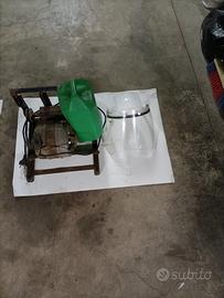 Mola costruita artigianalmente con il motore della lavatrice, supporto in ferro, cm. 37 x 37 x 25 Visiera protettiva, nuova