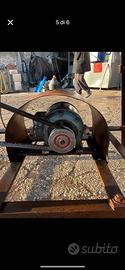 Mola antica con motore elettrico dotata di 3 pietre per affilare. Fissata su un banco con ruote per facilitarne lo spostamento. €150