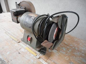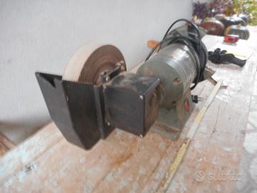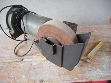 Vendo mola da banco con riduttore per affilare i coltelli a velocità ridotta. Monta mola per punte diam. 150 x spess. 15 e mola per coltelli diam. 180 x spess. 40. Bisogna rimettere i ripari di sicurezza. Consegna a mano