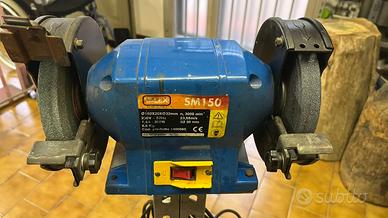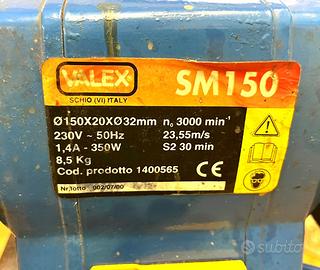 Mola da banco Valex SM150, ideale per affilatura utensili, molatura metalli e piccoli lavori di officina o bricolage. La macchina è già montata su un pratico e robusto piedistallo a colonna. Alimentazione: 230V ~ 50Hz (normale spina di casa) Potenza: 350W Velocità: 3000 giri/min Mole: diametro 150 mm x 20 mm (foro 32 mm) Doppia mola (grana grossa e grana media). Macchina perfettamente funzionante, pronta all'uso. Ottima soluzione per chi cerca un attrezzo pratico, già montato e subito operativo.