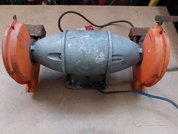 Come da foto vendesi mola professionale da banco a doppio disco. Solida e robusta nonostante il peso complessivo relativamente leggero, marca Tommasi e Bonetti, made in Italy. Normali segni di usura dovuti dal tempo ma perfettente funzionante, silenziosa e bilanciata. Monta una mola ed una spazzola, entrambe da 200mm di diametro.