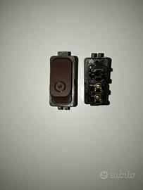Apparecchiature civili Molveno serie GL 2000 frutti marroni, supporti per scatola 503 a 3 posti e per scatola tonda a 1/2 posti con relative placche in resina e in alluminio anodizzato, invertitori, interruttori unipolari, deviatori, interruttori bipolari e Prese da 16A