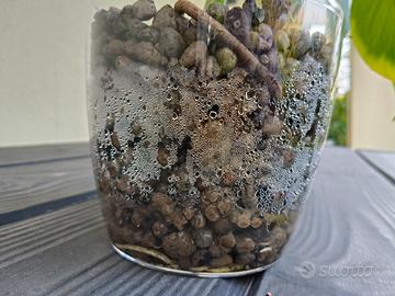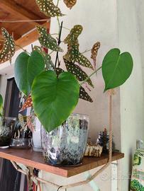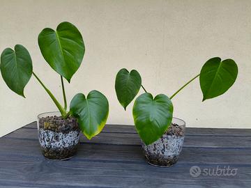 Due piante di Monstera Deliciosa ben radicate in idroponica con argilla espansa, un materiale che é: