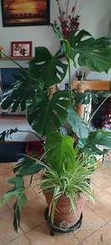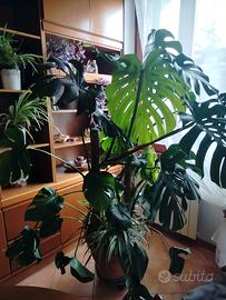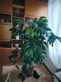vendo doppia monstera deliciosa su bastoni di circa 15 anni rigogliose e bellissime con falangio alla base. alte circa 180 cm larghezza circa 120 cm in vaso in resina festonato 50 cm colore cotto (indistruttibile e leggero)