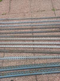 Vendo n. 10 montanti x scaffalatura con misure angolare mm. 35x35 x H cm 200 + 1 montante con angolo mm. 55x35 x H cm 300 + altro sempre mm. 55x35 ×H cm 240 .