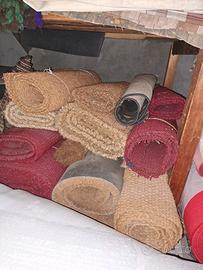 moquette di varie metrature , tappeti con gomma sotto, tappeti in cocco ed altri tipi. Vendita al metro quadro da 1 euro a 10 euro. Super offerta.