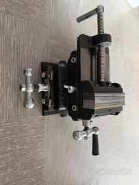 Vendo morsa a croce professionale marca Valex, ideale per lavori di precisione su trapano a colonna o fresa. Lo strumento permette lo spostamento millimetrico dell'oggetto su due assi (X e Y) senza doverlo staccare dalla morsa.